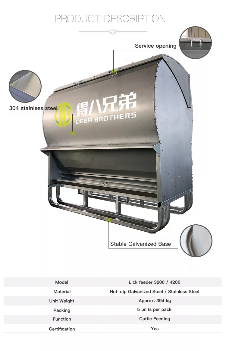 మా ఉచిత యాక్సెస్ స్టాల్స్ మరియు హెవీ డ్యూటీ గాల్వనైజ్డ్ కాటిల్ లిక్ ఫీడర్లు వినియోగదారు-స్నేహపూర్వక డిజైన్ను కలిగి ఉంటాయి, అన్ని ప్రమాణాల పశువుల ఫారాలకు అనుకూలంగా ఉంటాయి మరియు ప్రీమియం పదార్థాలు మరియు చక్కటి పనితనం ద్వారా అసాధారణమైన మన్నికను అందిస్తాయి. ప్రపంచవ్యాప్తంగా పశువుల పెంపకందారులచే మంచి ఆదరణ పొందింది, ఈ ఉత్పత్తులు వాటి స్థిరమైన పనితీరు మరియు అధిక ఖర్చు-ప్రభావం కోసం పూర్తిగా ధృవీకరించబడ్డాయి.